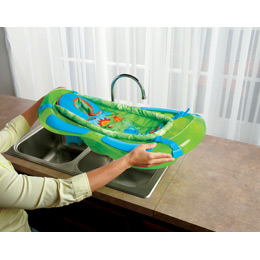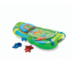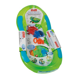 Babies can be slippery when wet. And making baby feel secure in the bath is key in creating a happy bath time experience. That’s why this tub has easy adjustments for your growing little one. From newborn to toddler, you’ll be able to find just the right fit. Plus, a head cushion provides extra stability and a sling provides support for baby in all the three stages. When baby enjoys bath time, it’s easier for you to enjoy it, too. When baby is ready to sit up and play, the Fisher-Price Rainforest Bath Center offers a comfortable and familiar sit and play bath space that’s just the right size. A frog cup, toucan sifter, and monkey teether encourage baby to discover water play fun—scooping, straining, and pouring.